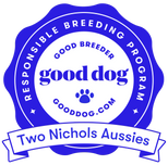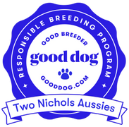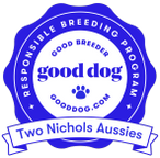 Our customers love their puppies from Two Nichols Aussies Breeder! Read some of our glowing reviews and see why we are one of the most trusted breeders in the area. ”Good Dog” verified owner stories are included in the drop down.